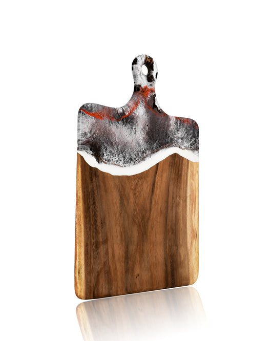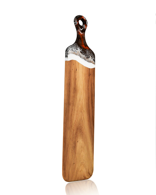 Fusion'D stylish serving boards are lovingly carved from a single piece of sustainably sourced Acacia Wood. The epoxy resin is freely poured to create a beautiful Ocean wash design.